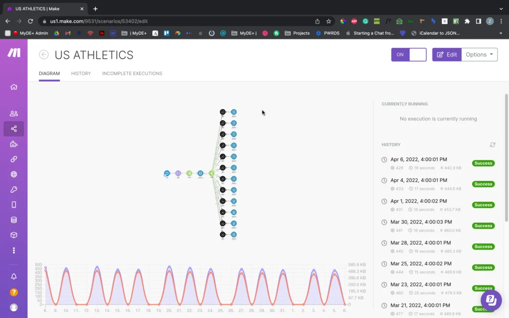 Zach inicialmente lo intentó con Zapier, pero la plataforma no pudo hacer el trabajo. Afortunadamente, se topó con Make. Y después de algunas horas de jugar con la plataforma, pudo conectar las aplicaciones y crear la automatización exacta que necesitaba.